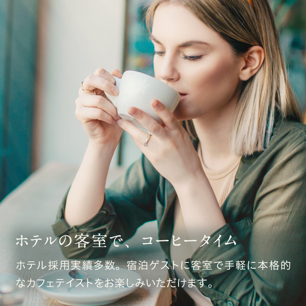 ホテルの客室サービスやオフィス用に便利な個包装タイプのドリップコーヒーで、手軽に本格的なカフェタイムをお楽しみください。