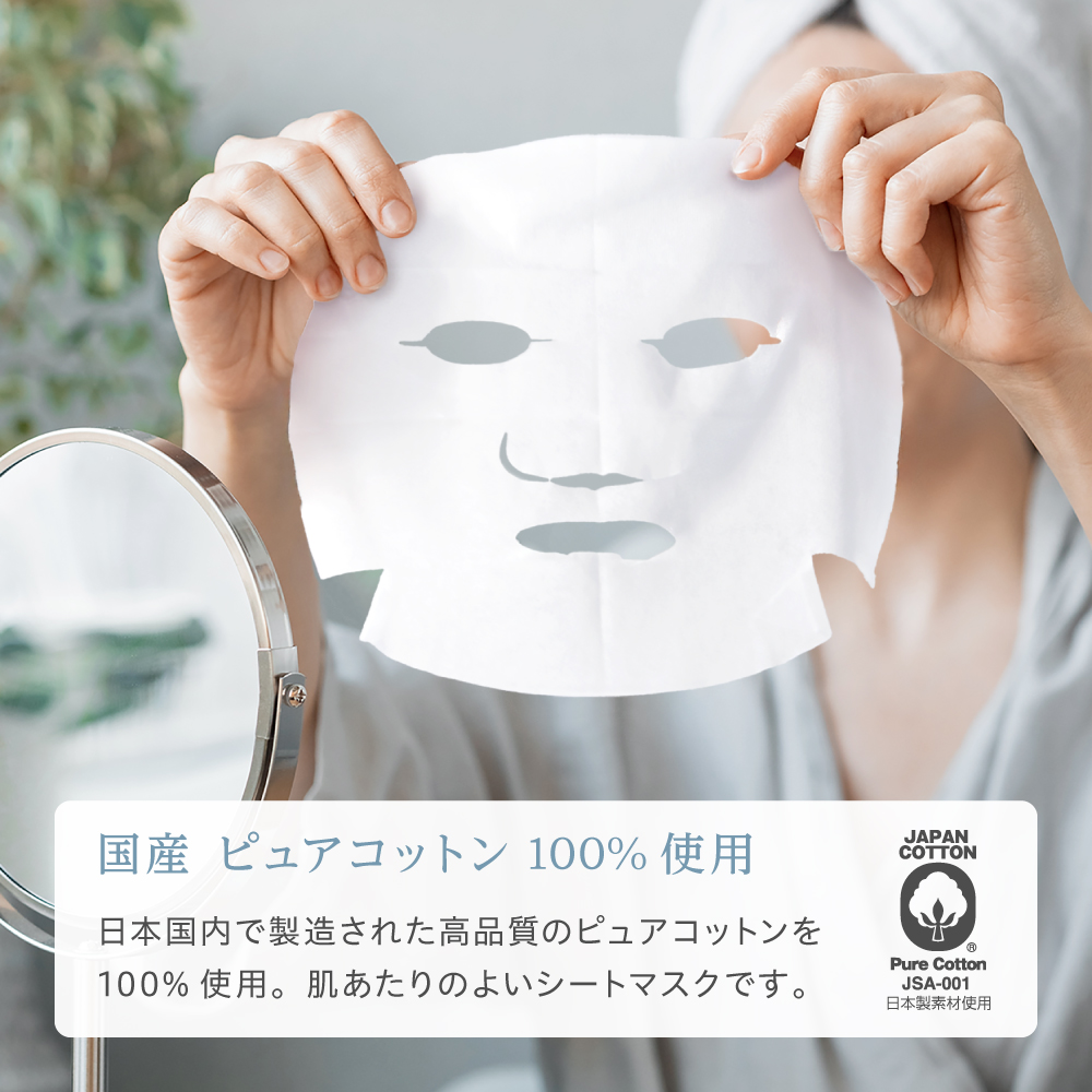 ピュアコットン100%のお肌に優しいシートを使用したフェイシャルマスクです。