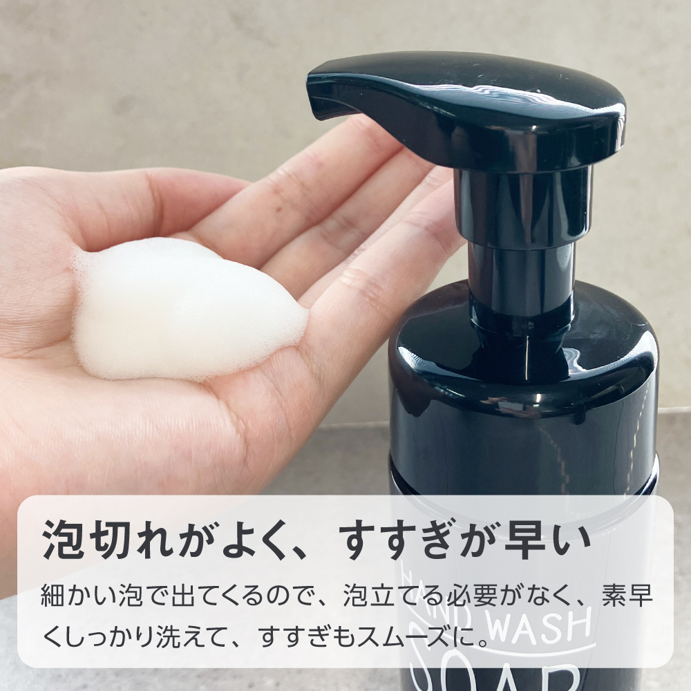 泡タイプなので泡切れがよく、すすぎもスムーズに。素早くしっかり手洗いできます。