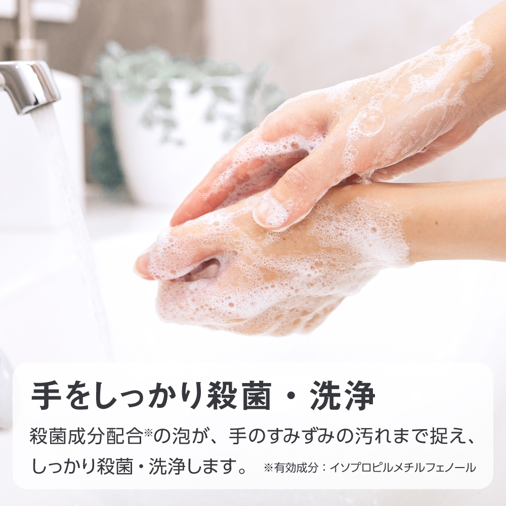 殺菌成分配合※の泡で、手のすみずみの汚れを捉え、しっかり殺菌・洗浄します。