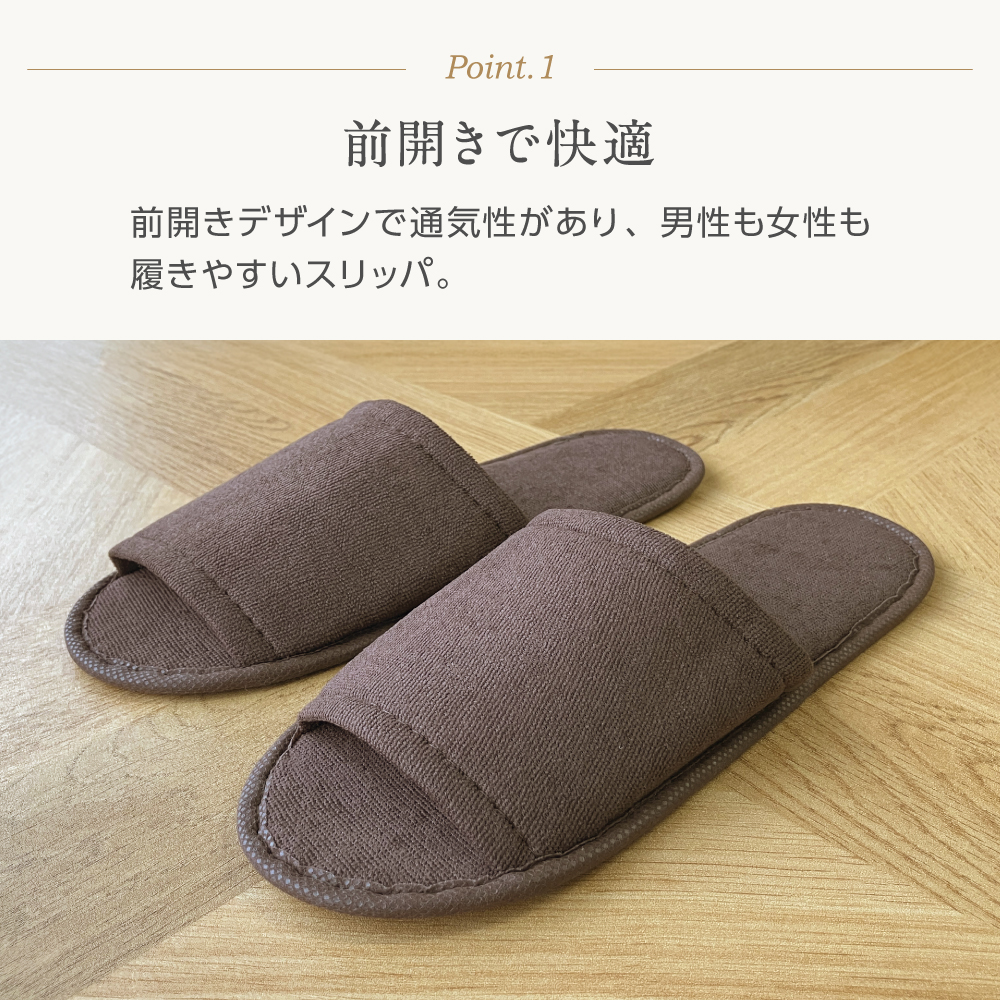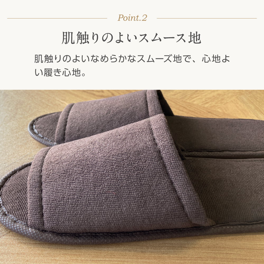 肌触りのよいなめらかなスムース地(ニット地)の前開きスリッパです。
