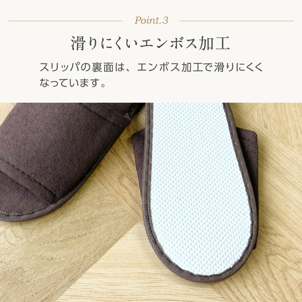 スリッパの裏面はエンボス加工になっており、滑りにくくなっています。