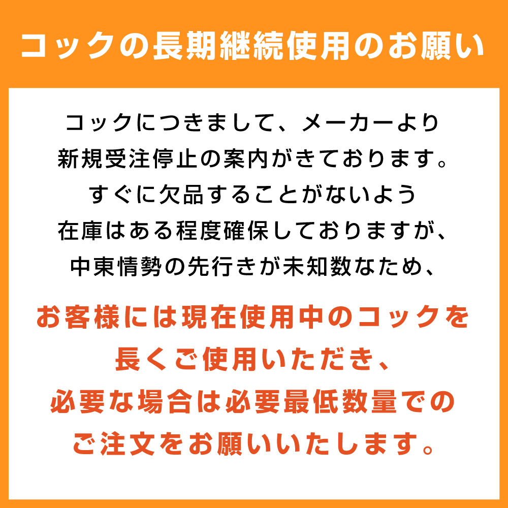 中東情勢の影響によるコックの長期継続使用のお願い