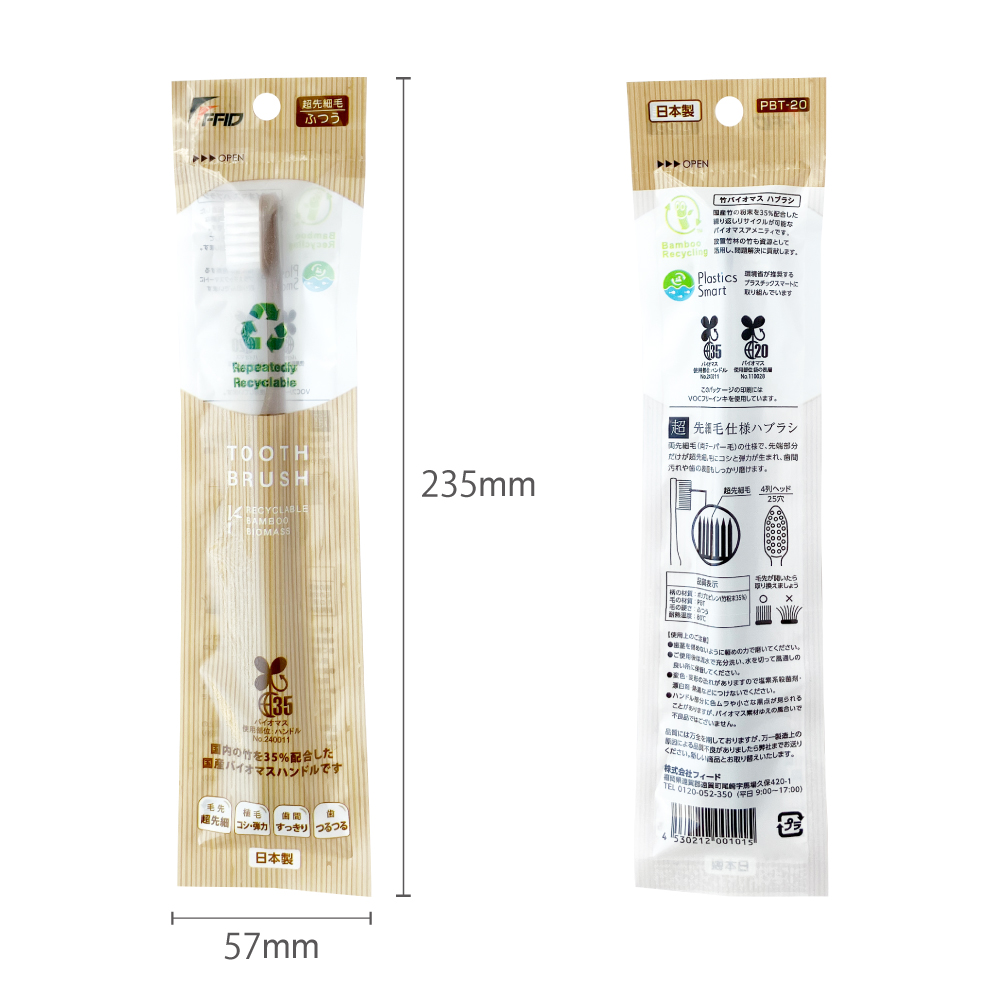 バイオマス歯ブラシを販売用にパッケージした商品です。