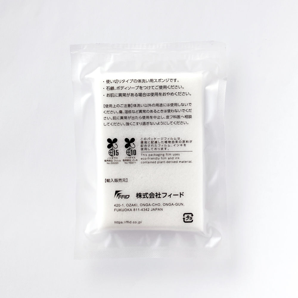 ソフトでやわらかいタイプのボディスポンジです。石けんやボディーソープをつけてご使用ください。