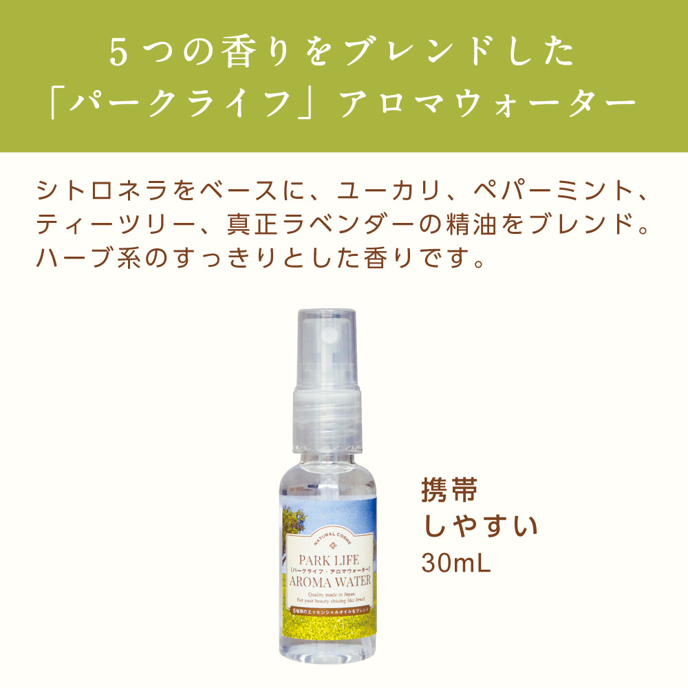 「シトロネラ精油」をベースに「ユーカリ精油」「ペパーミント精油」「ティーツリー精油」「真正ラベンダー精油」をブレンドした天然精油100%のアロマウォーターです。