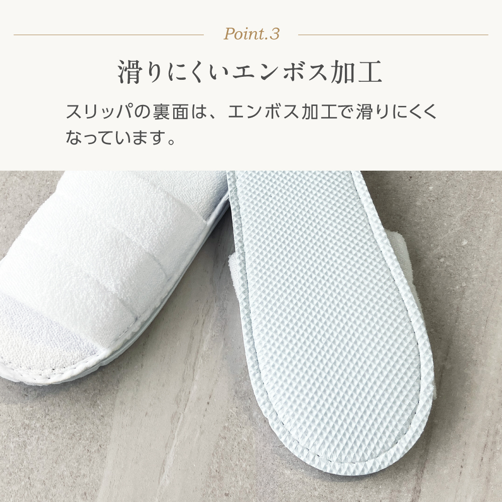 スリッパの裏面はエンボス加工になっており、滑りにくくなっています。