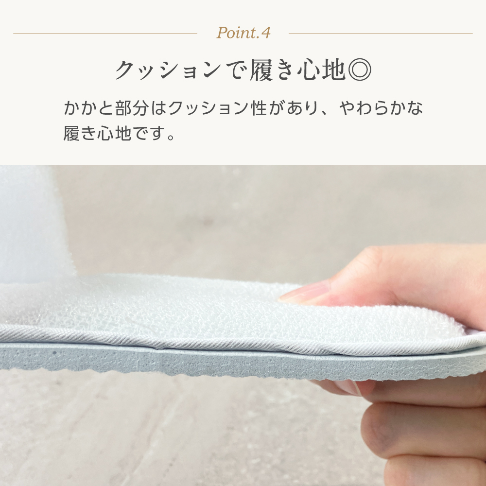 かかと部分には少しクッション性があり、快適な履き心地になっています。