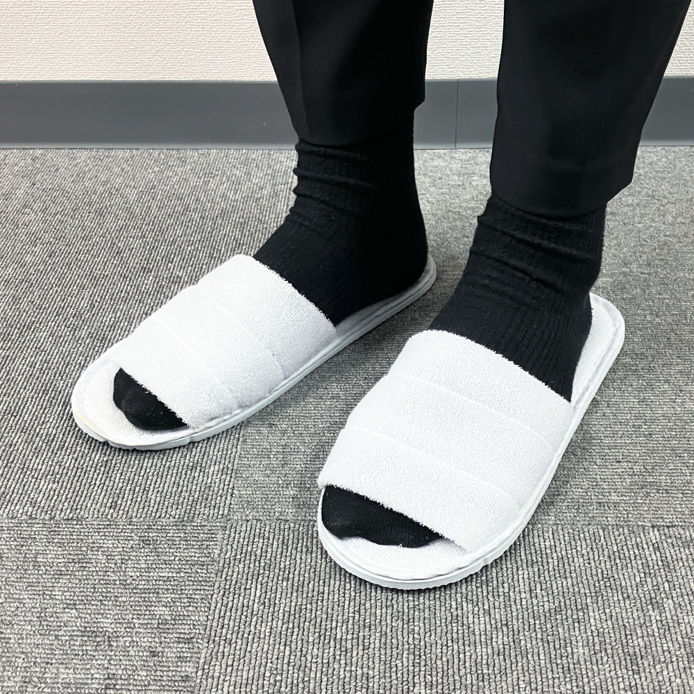 通常のアメニティ用のスリッパと比べて底の厚みが7mmと厚めの仕様。