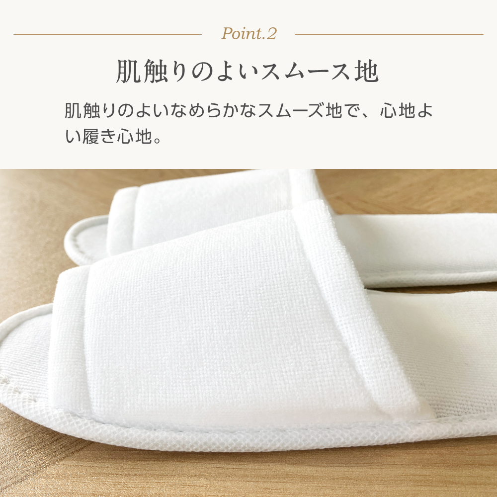 肌触りのよいなめらかなスムース地(ニット地)の前開きスリッパです。