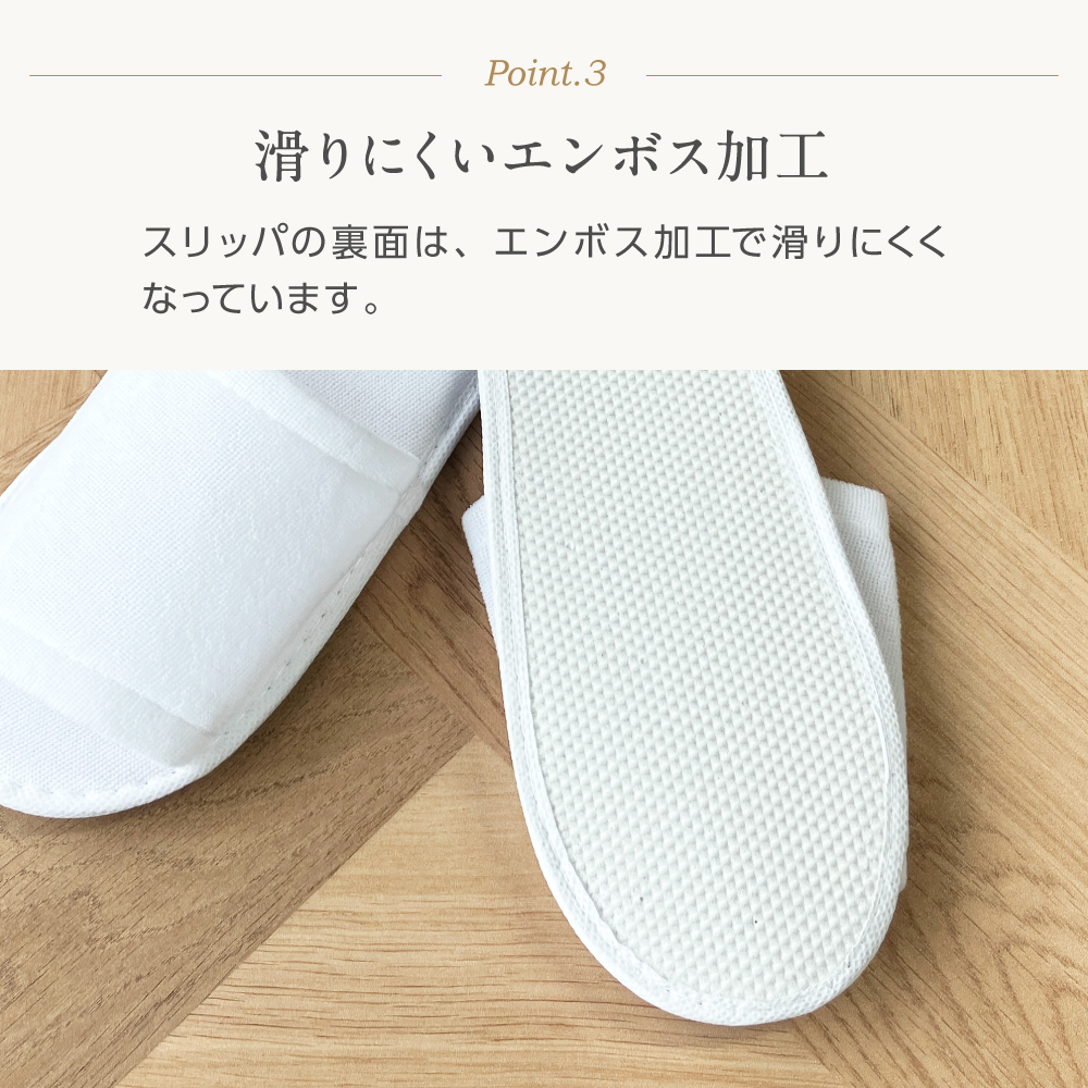 スリッパの裏面はエンボス加工になっており、滑りにくくなっています。