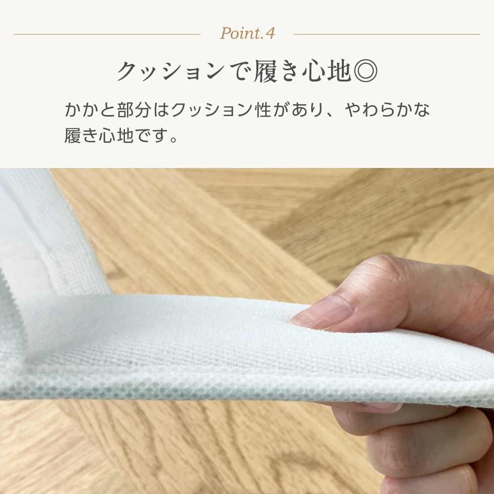 かかと部分には少しクッション性があり、快適な履き心地になっています。