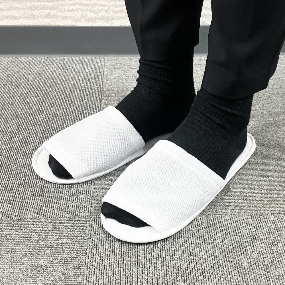 通常のアメニティ用のスリッパに多い厚み5.3mm程度の底です。