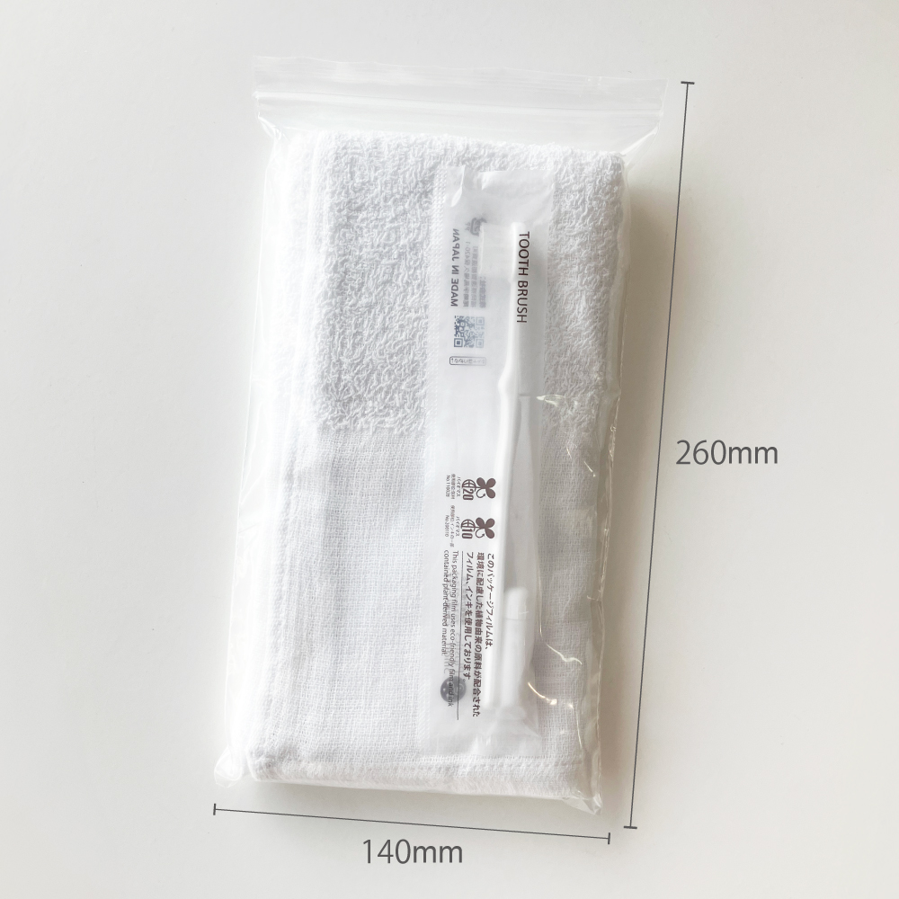 タオル 180匁 歯ブラシ PBT-00 透明ZIP袋セット (150セット)