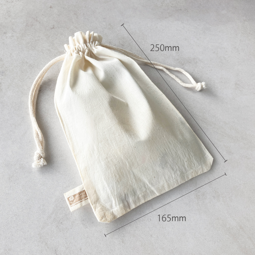オーガニックのコットンバッグ(巾着袋)に入ったセットになっているので、管理しやすく準備の手間も掛かりません。