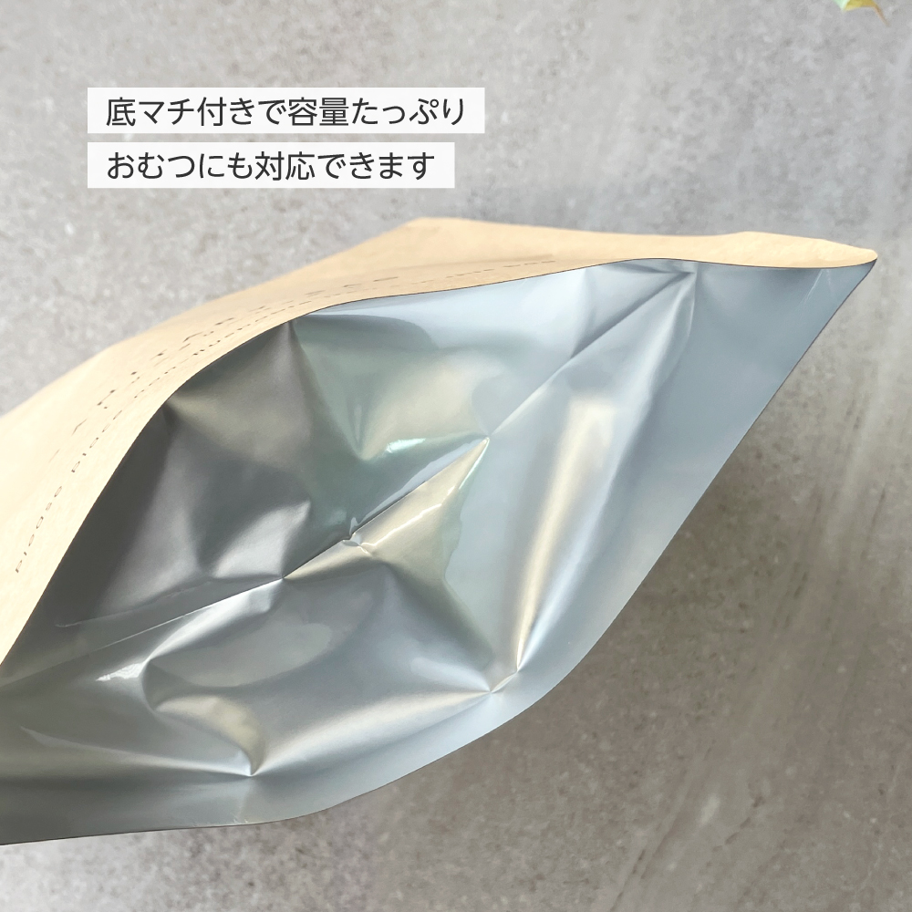 アルミ密閉フィルムとチャックでニオイ漏れも防ぐ